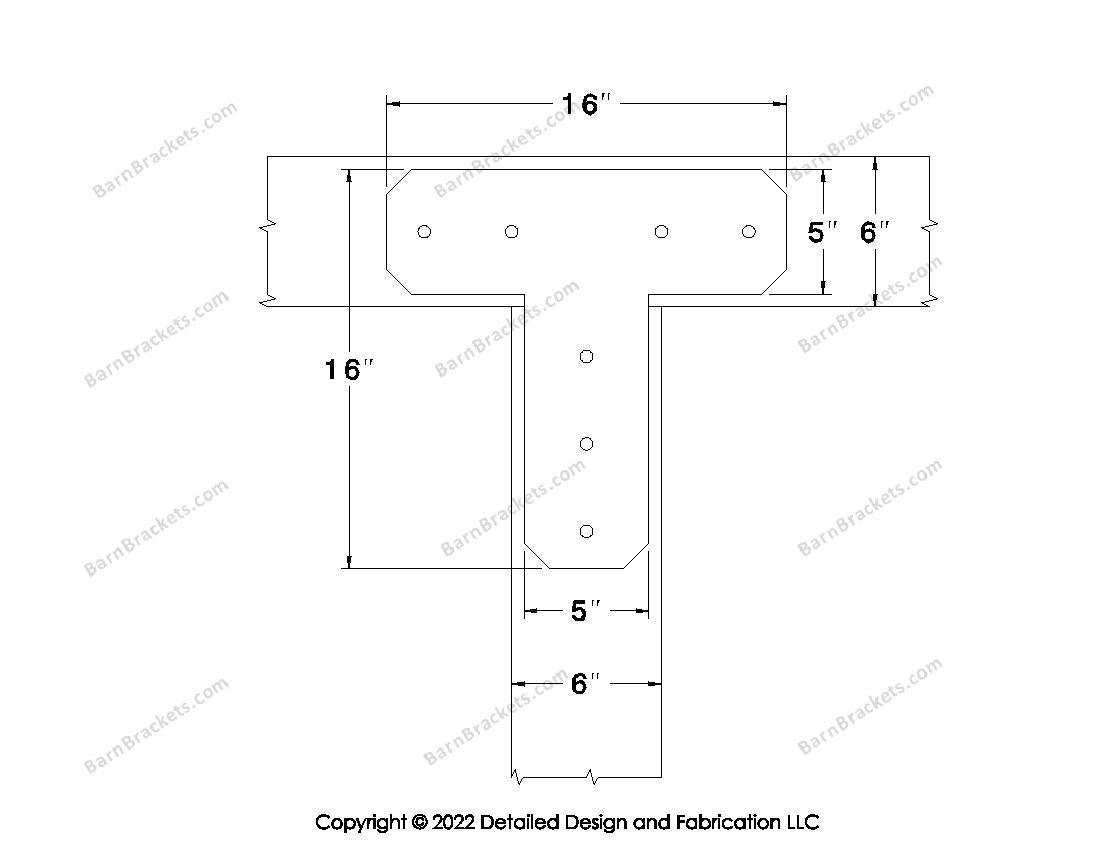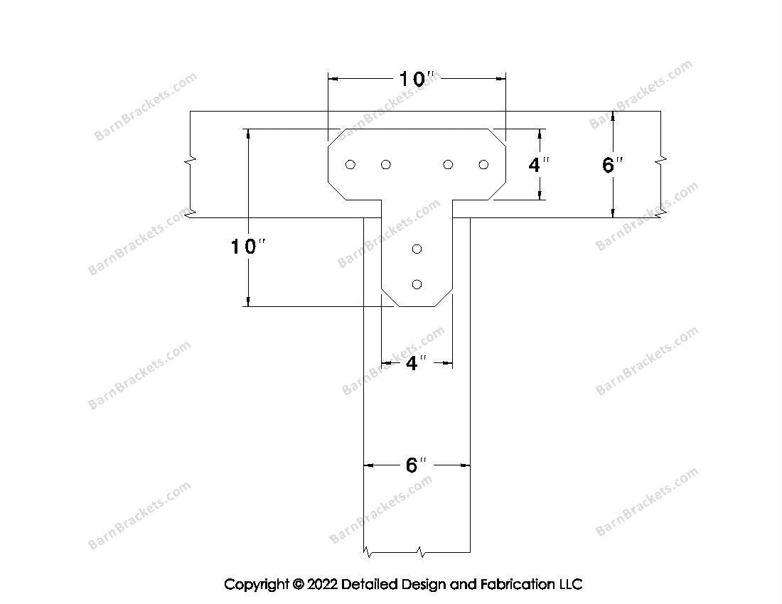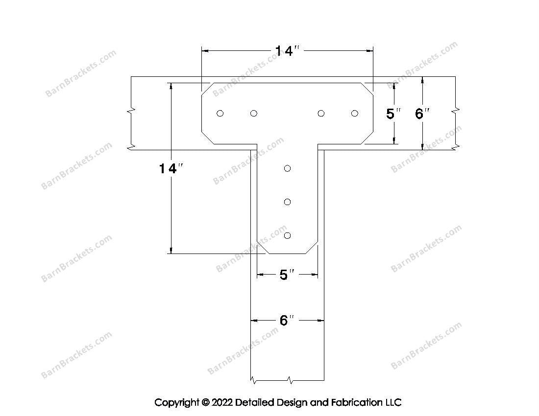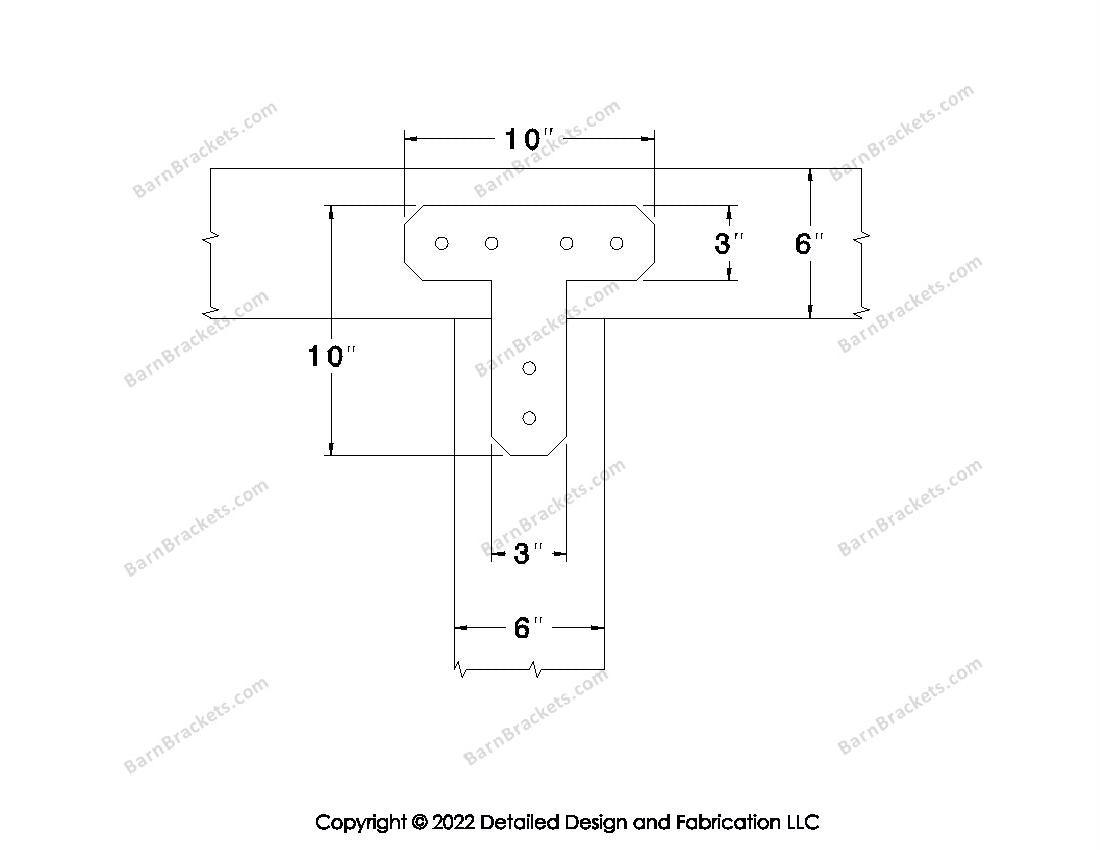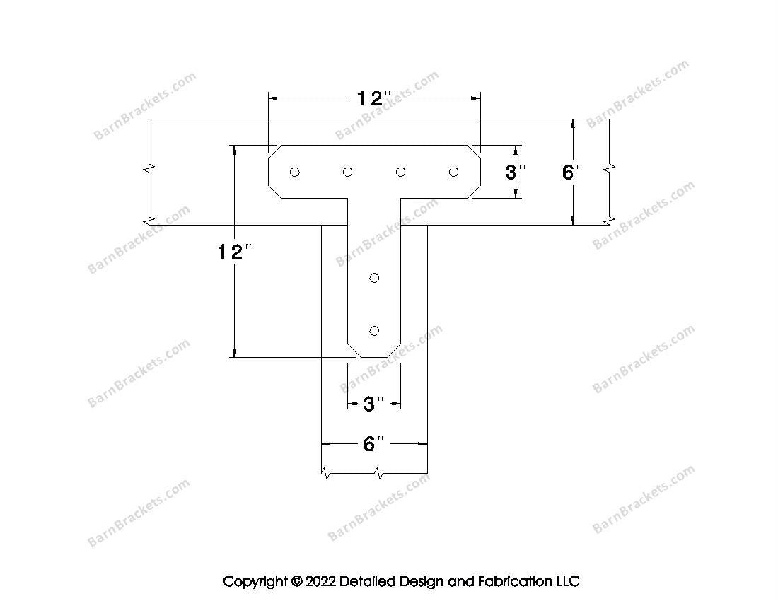 T shaped Brackets for 6 inch beams - Chamfered - Centered style holes - BarnBrackets.com
