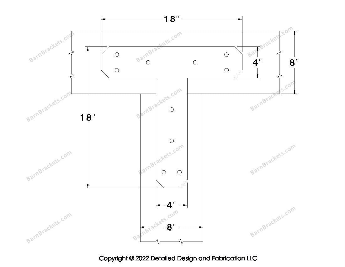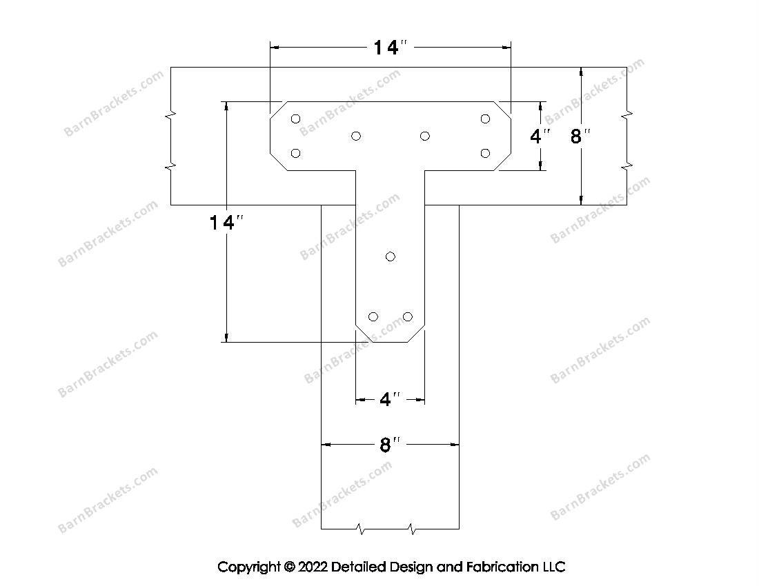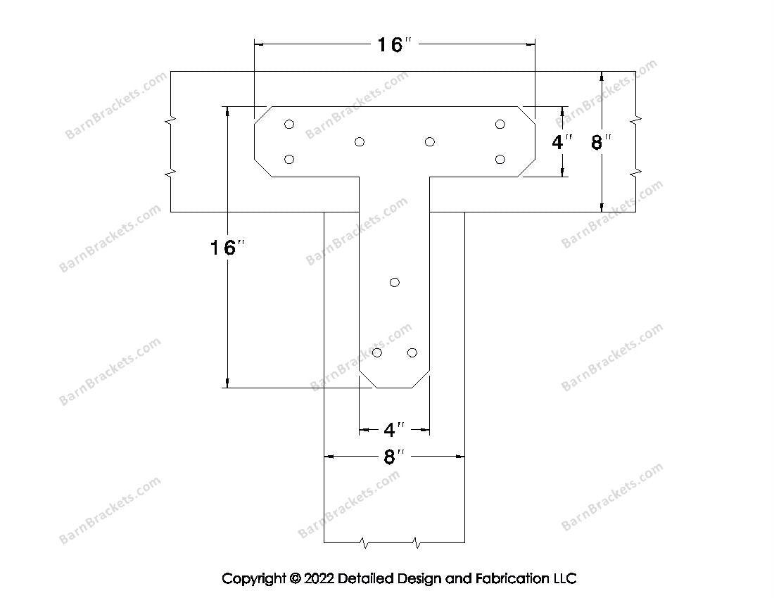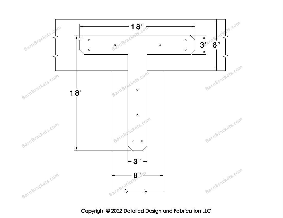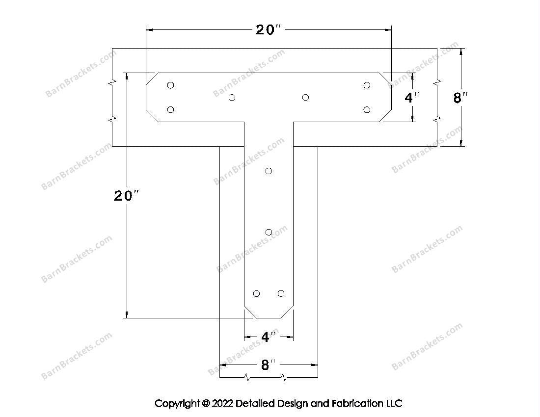 T shaped Brackets for 8 inch beams - Chamfered - Triangular style holes - BarnBrackets.com