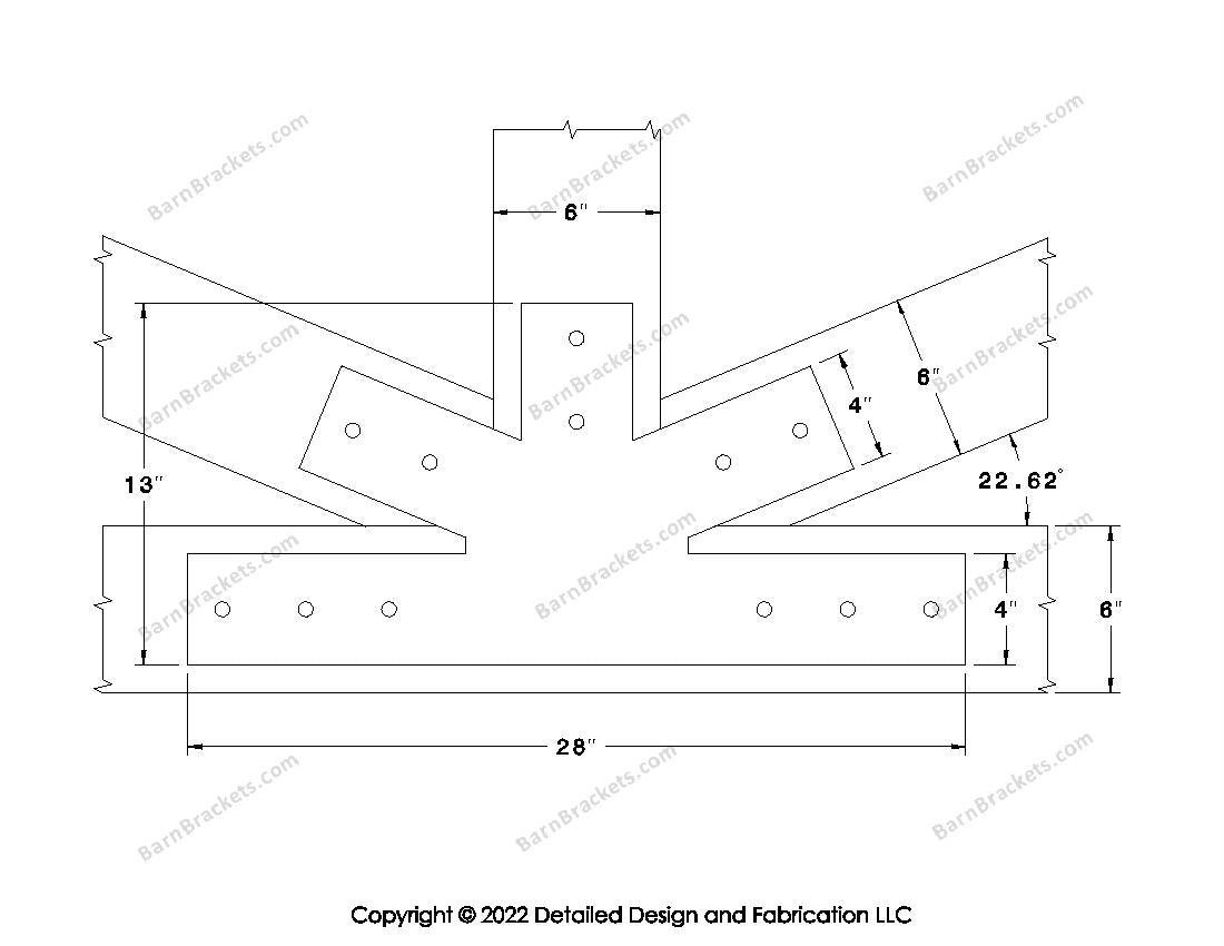 Fan Brackets for 6 inch beams - 4 inch Wide centered joint - Square - Centered style holes - BarnBrackets.com