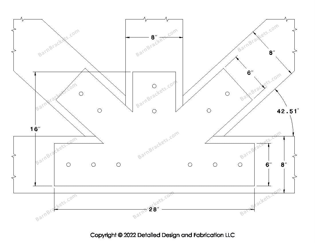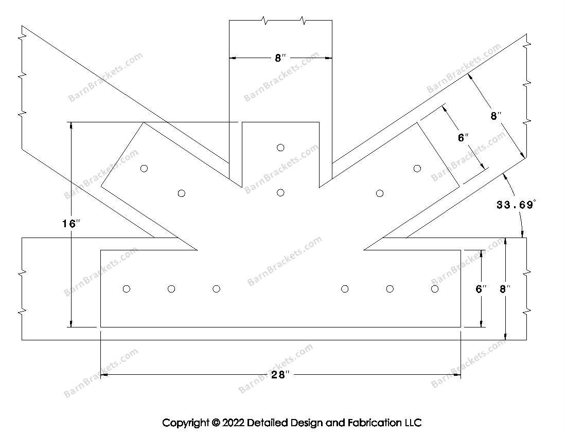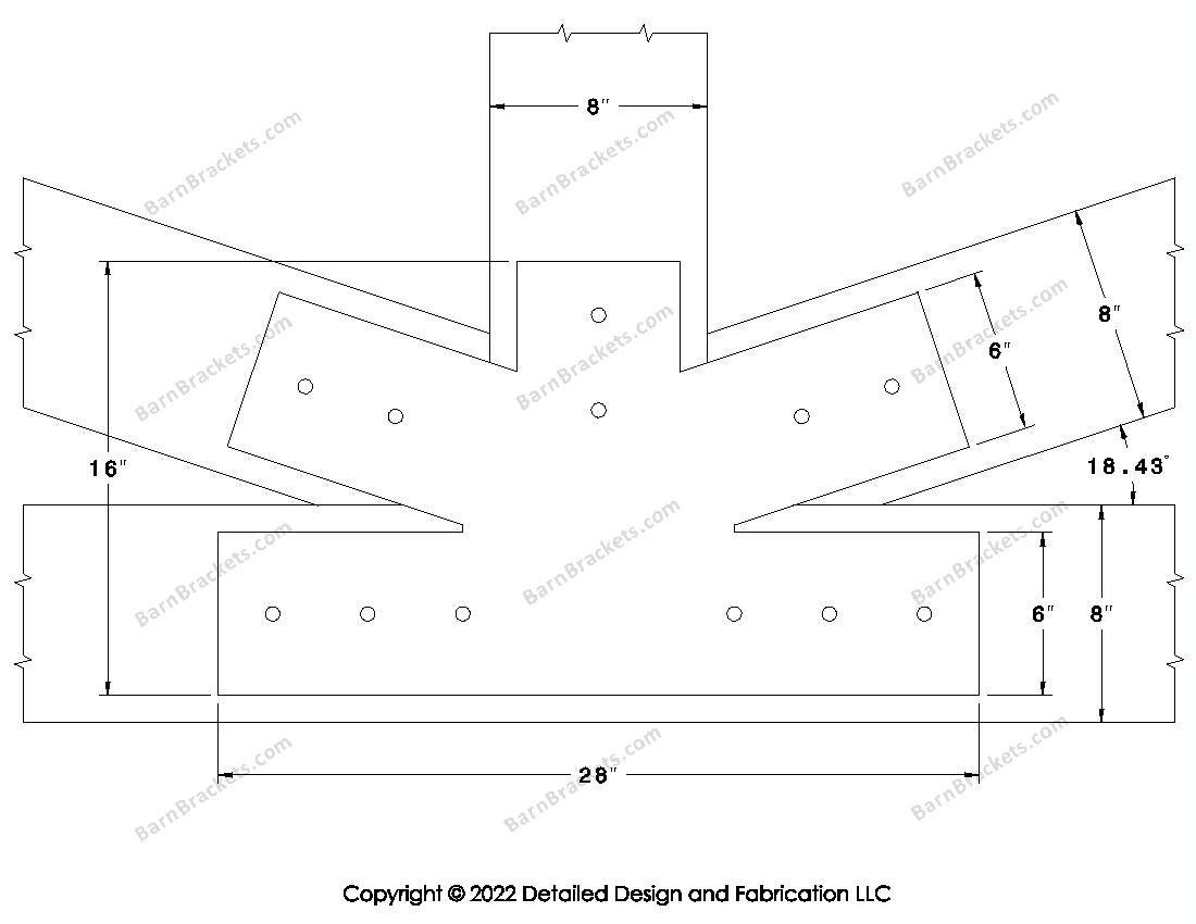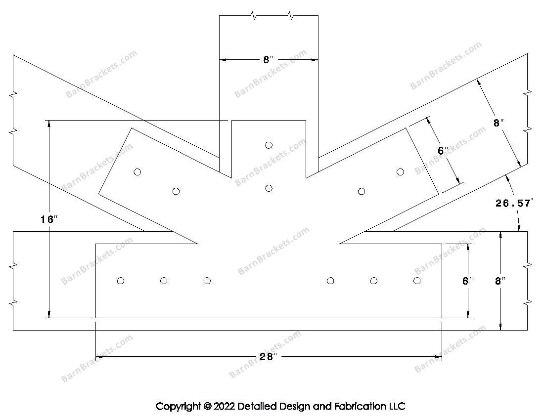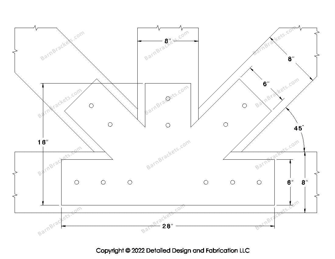 Fan Brackets for 8 inch beams - 6 inch Regular centered joint - Square - Centered style holes - BarnBrackets.com