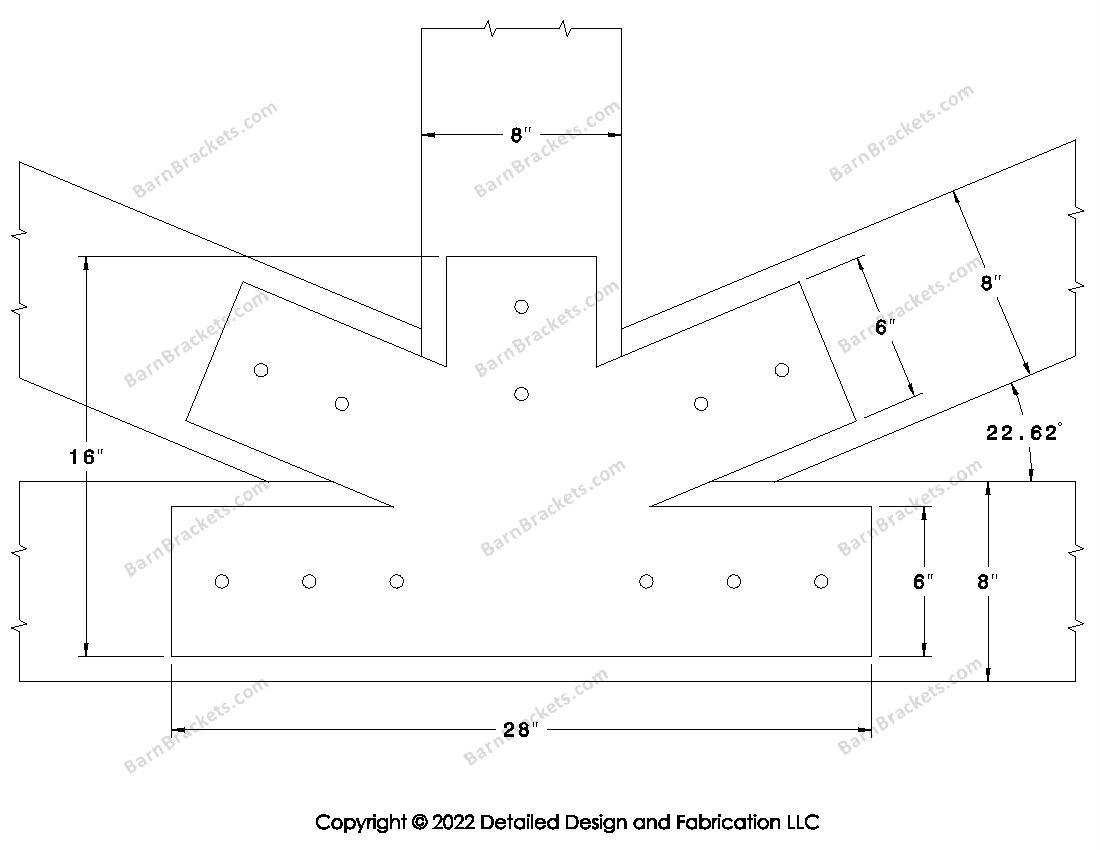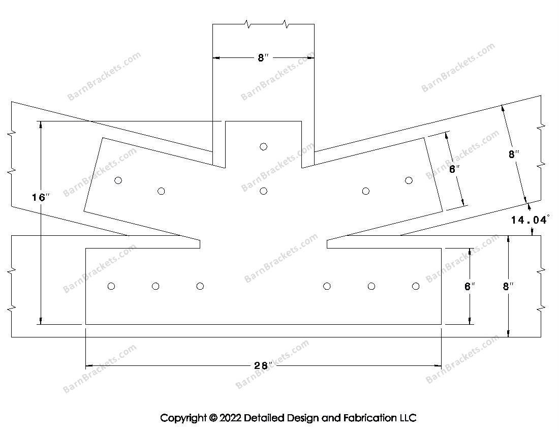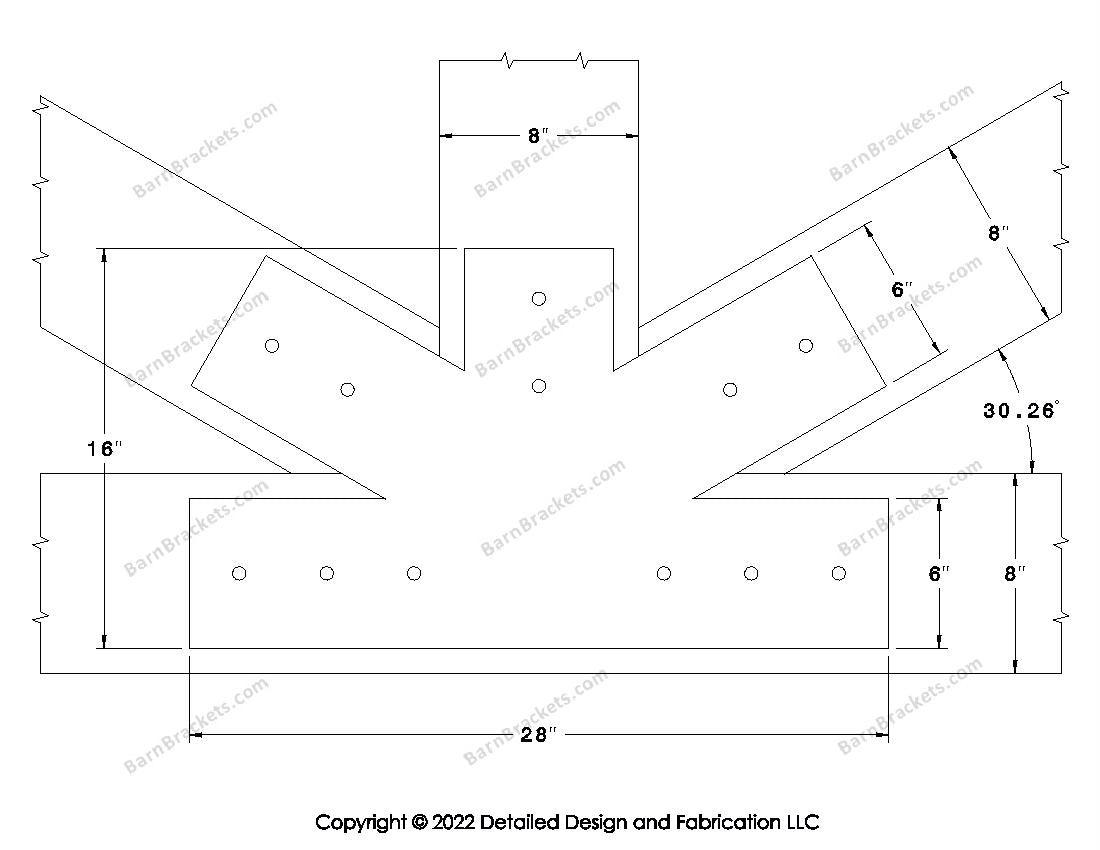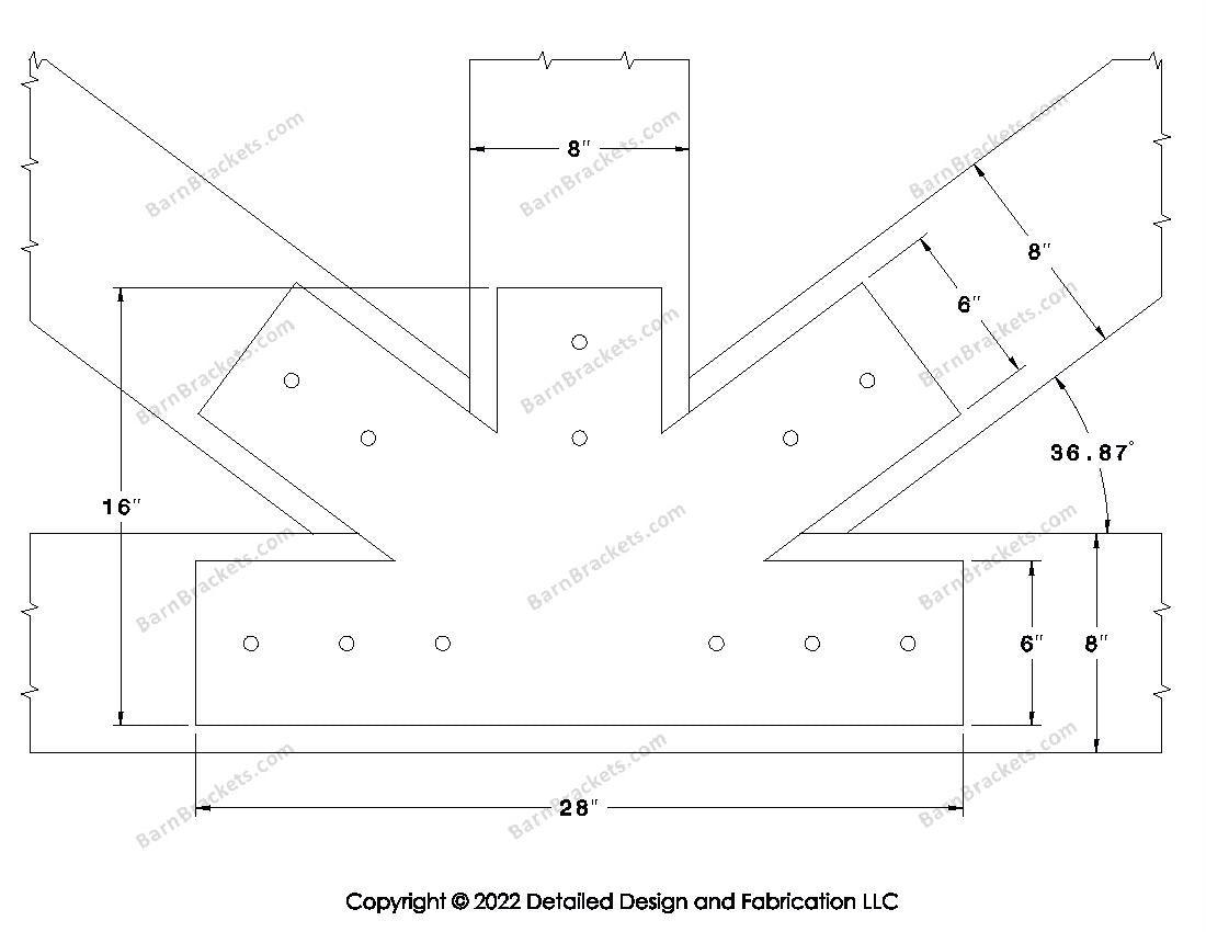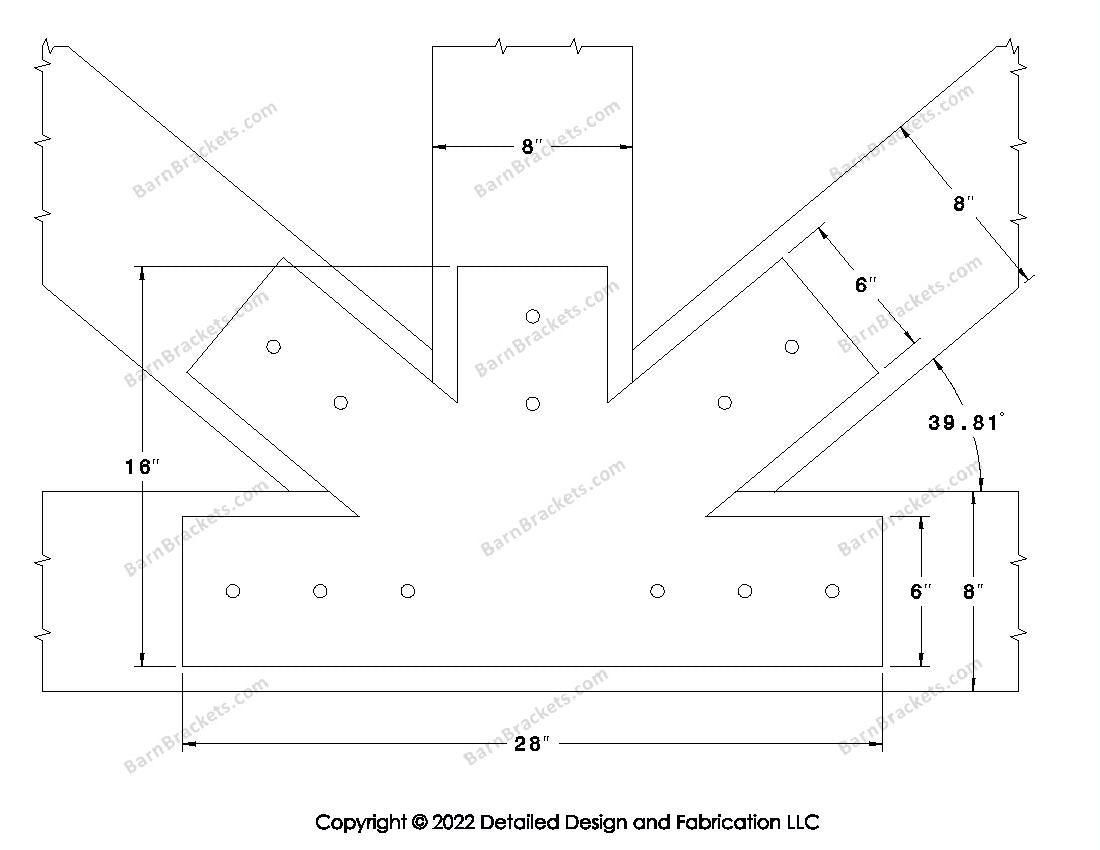 Fan Brackets for 8 inch beams - 6 inch Regular centered joint - Square - Centered style holes - BarnBrackets.com