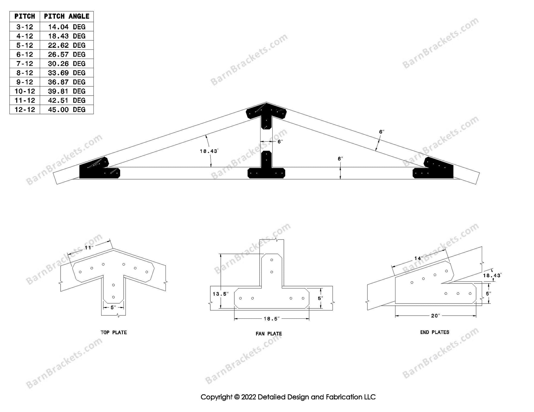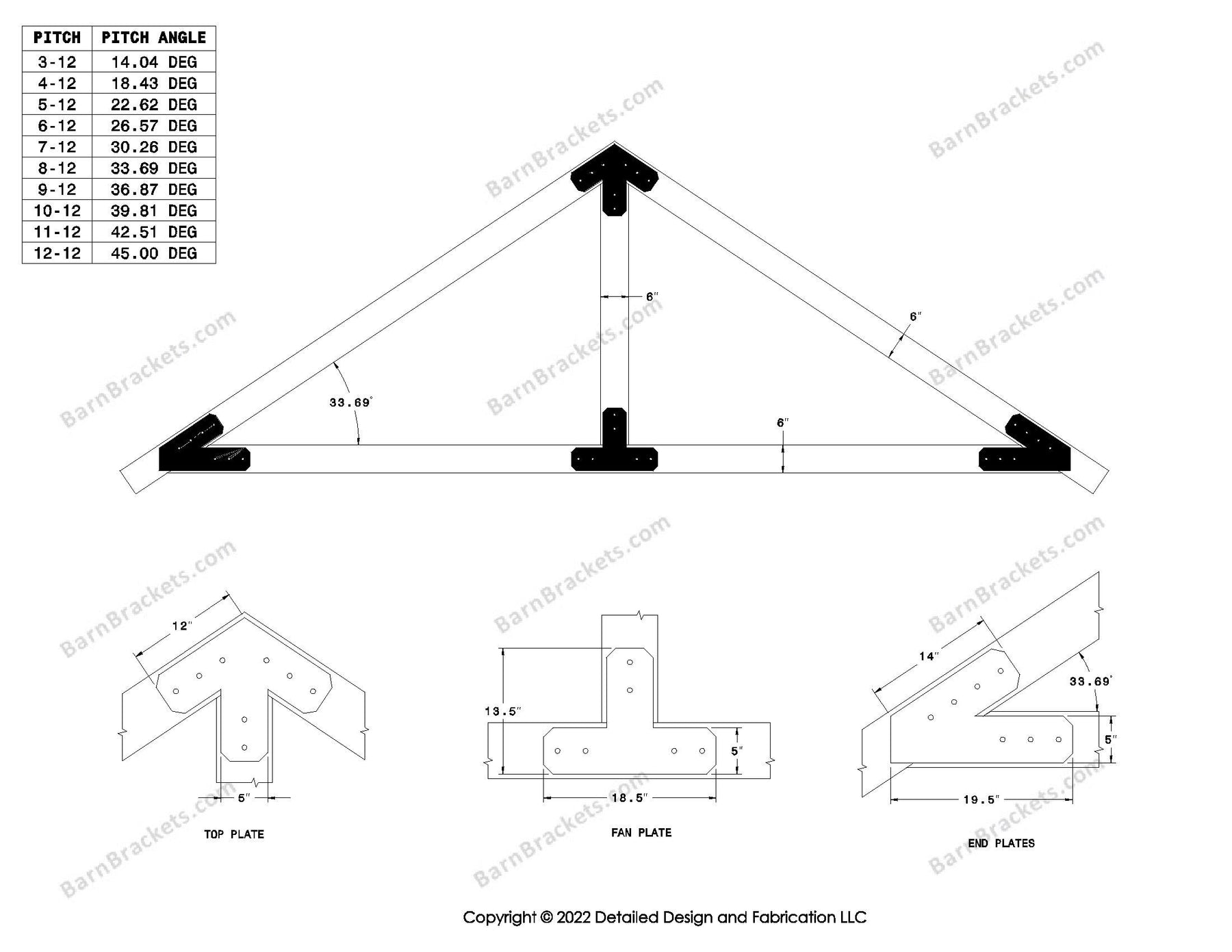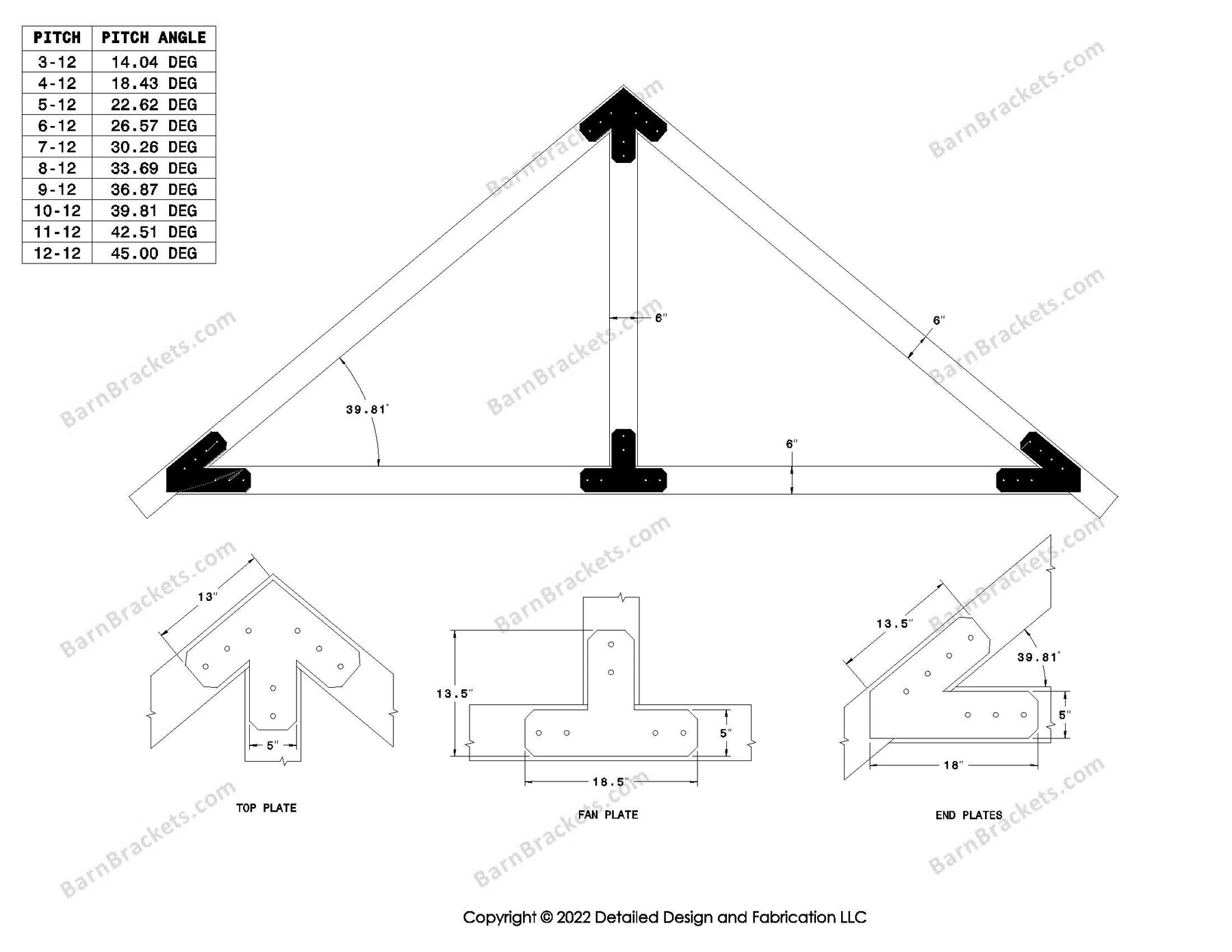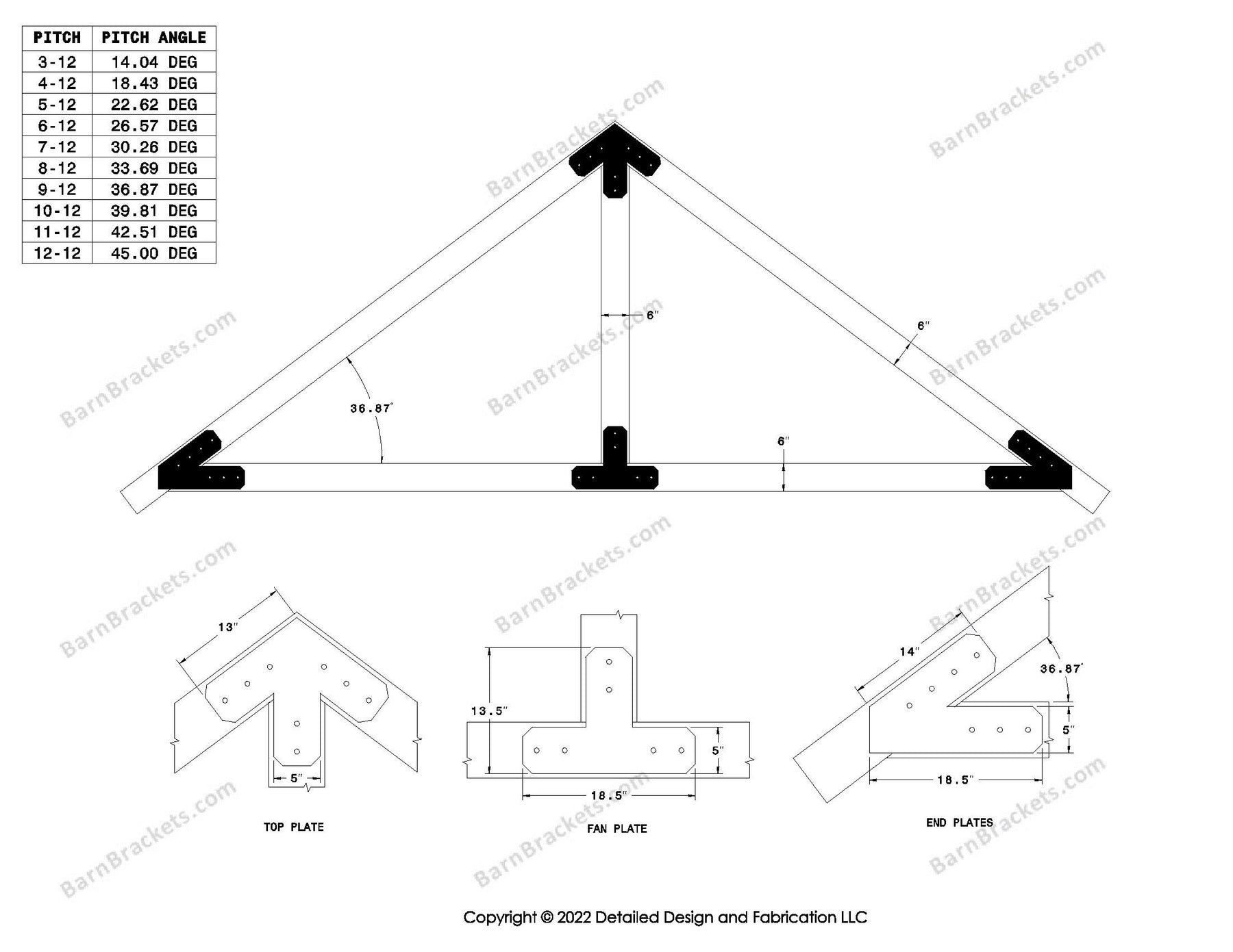 5 inch truss plate set for 6 inch beams - King post only - overhang ends - chamfered