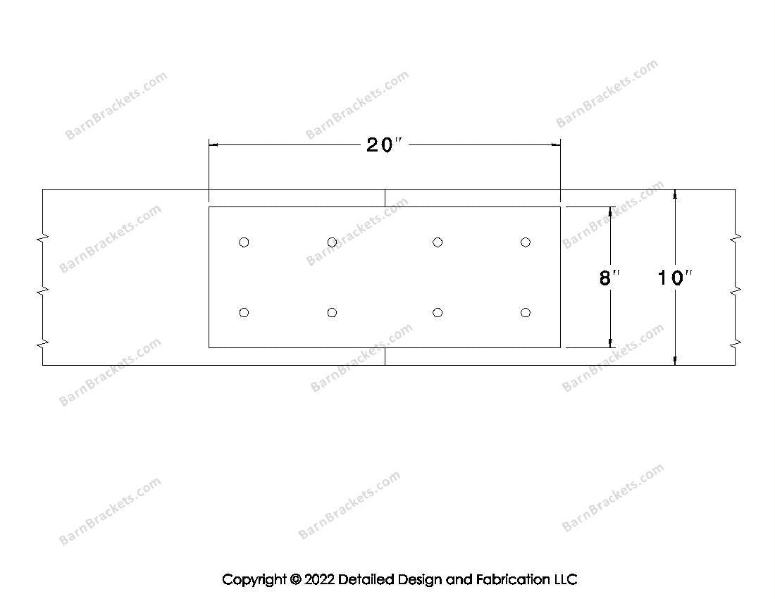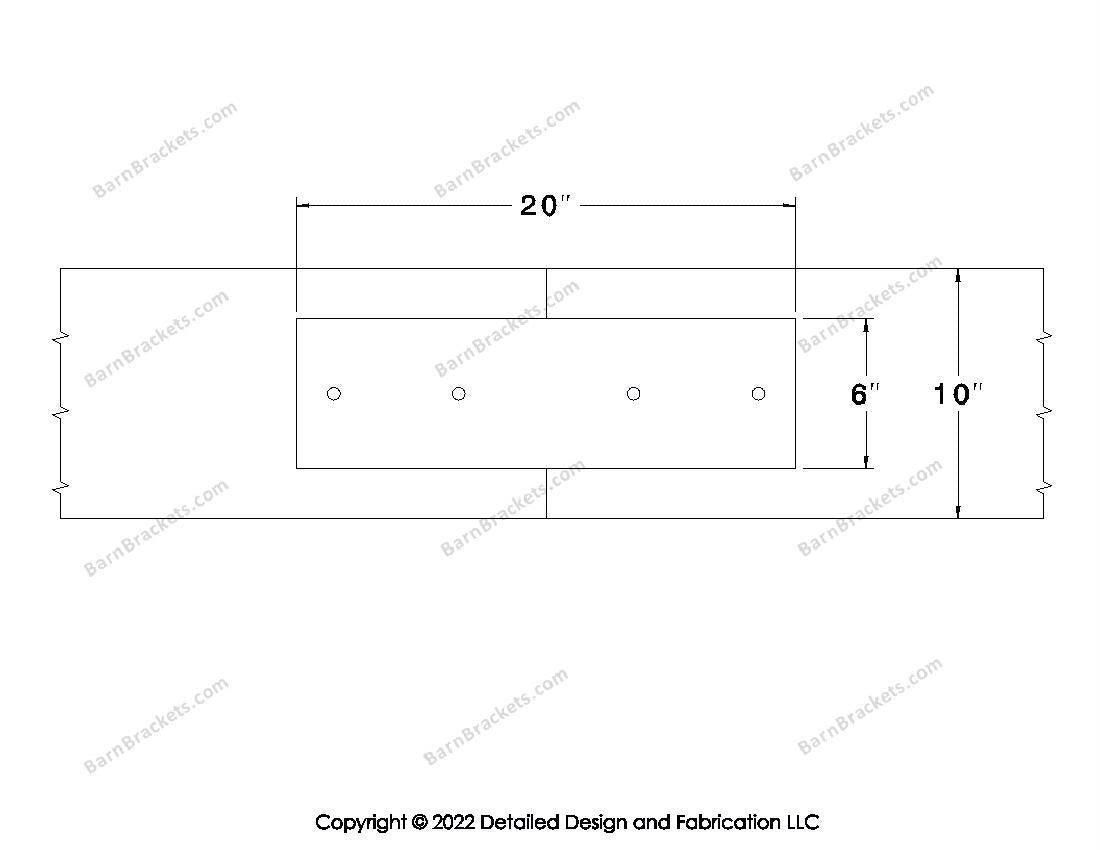 Union Brackets for 10 inch beams - Square - Centered style holes - BarnBrackets.com