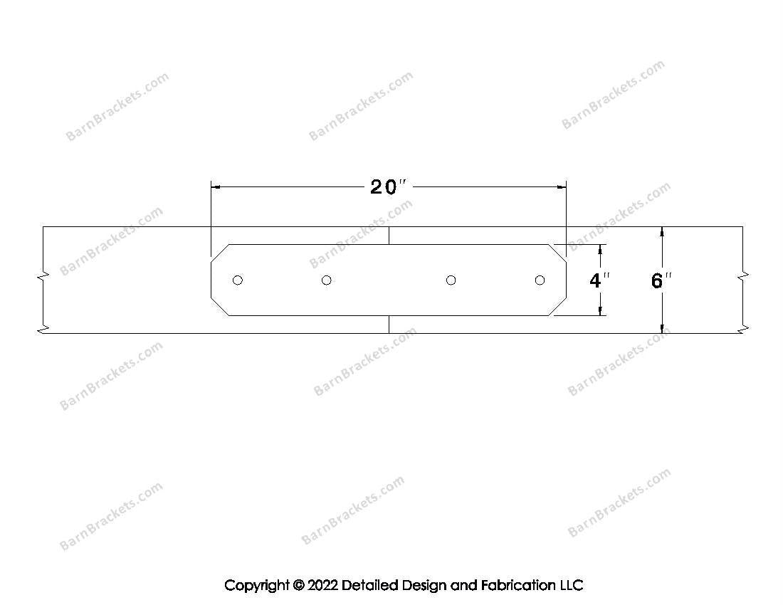 Union Brackets for 6 inch beams - Chamfered - Centered style holes - BarnBrackets.com