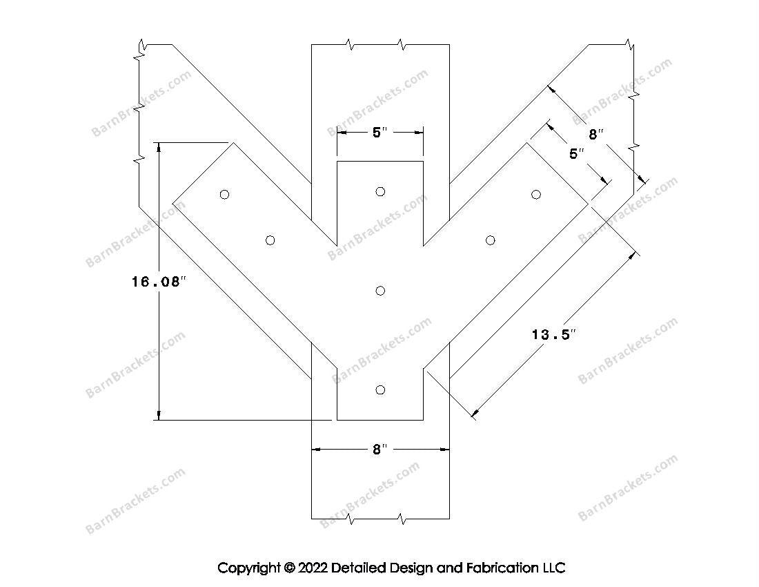 Full Y shaped Brackets for 8 inch beams - Centered style holes - Square - BarnBrackets.com