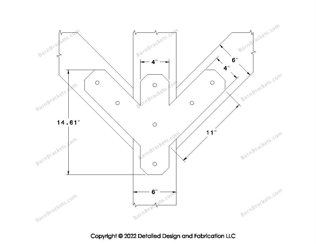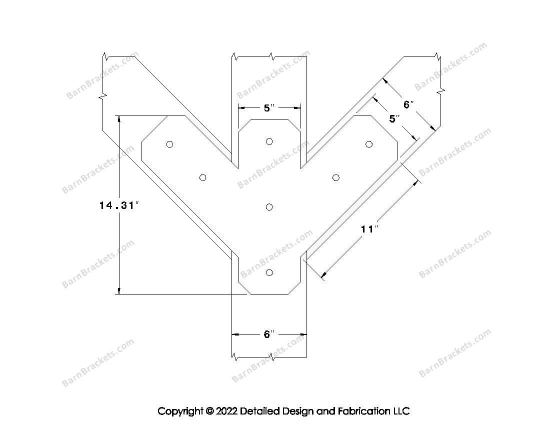 Full Y style Brackets for 6 inch beams - Centered style holes - Chamfered - BarnBrackets.com