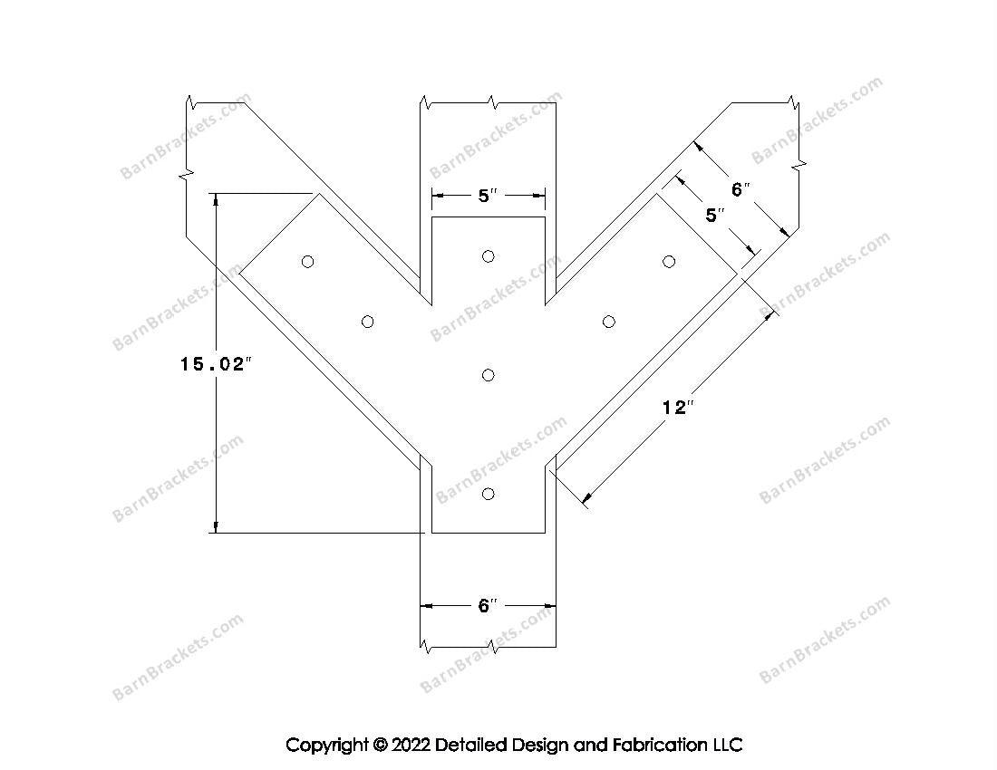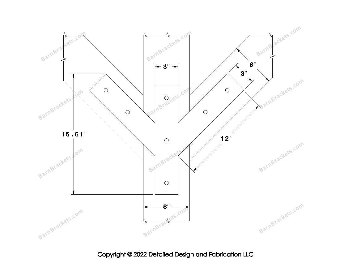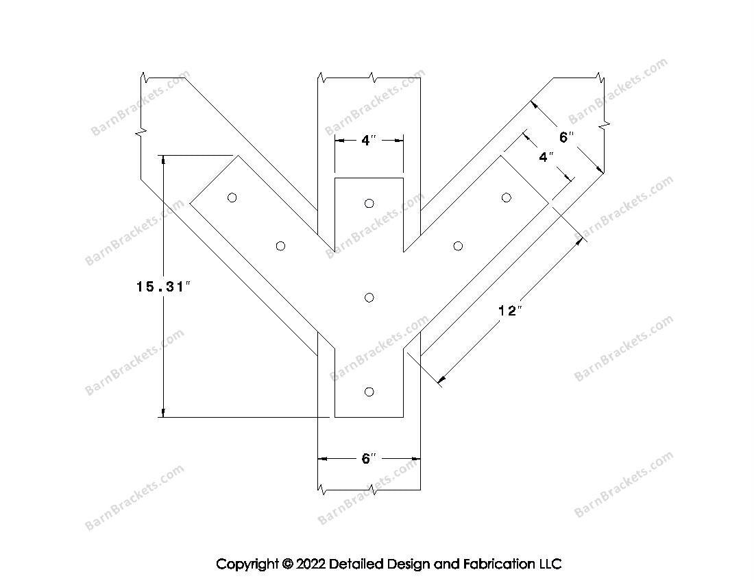 Full Y style Brackets for 6 inch beams - Centered style holes - Square - BarnBrackets.com