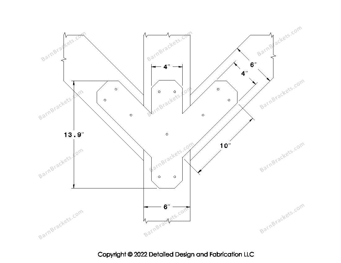 Full Y style Brackets for 6 inch beams - Triangular style holes - Chamfered - BarnBrackets.com