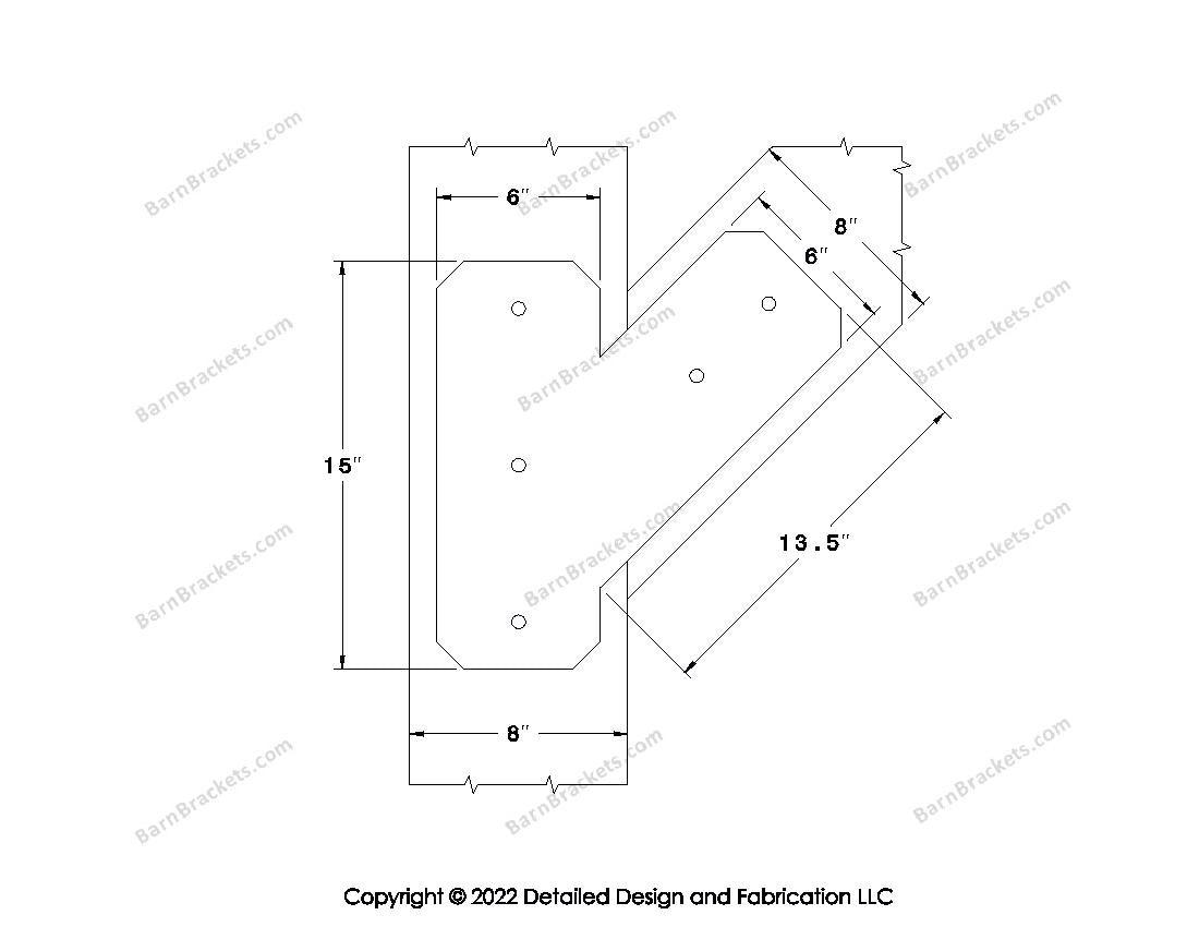 Half Y shaped Brackets for 8 inch beams - Centered style holes - Chamfered - BarnBrackets.com