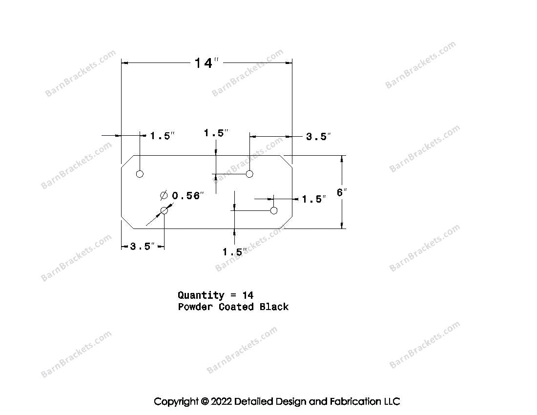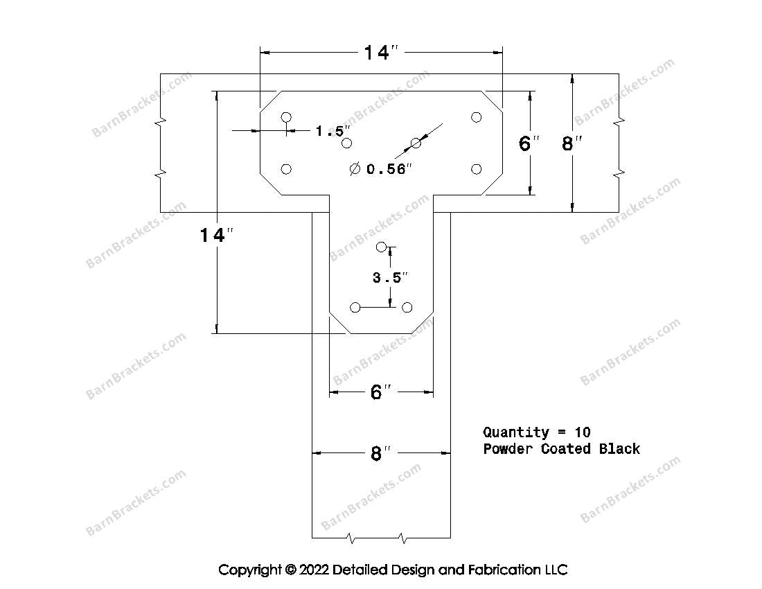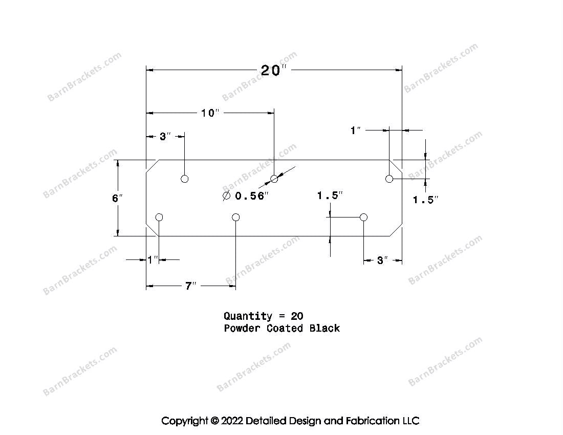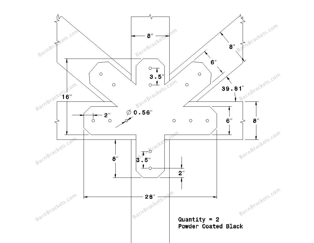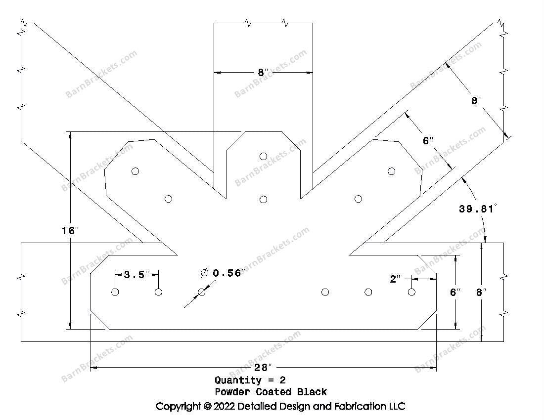 Leave Hole Size note in the spot above the subtotal in the Cart or email us info@barnbrackets.com We recommend drilling holes 1/16" larger in diameter than the fasteners you plan on using. If no hole sizing notes are added to the order, we will drill holes to 9/16" for 1/2" diameter hardware. Please contact us with any questions.