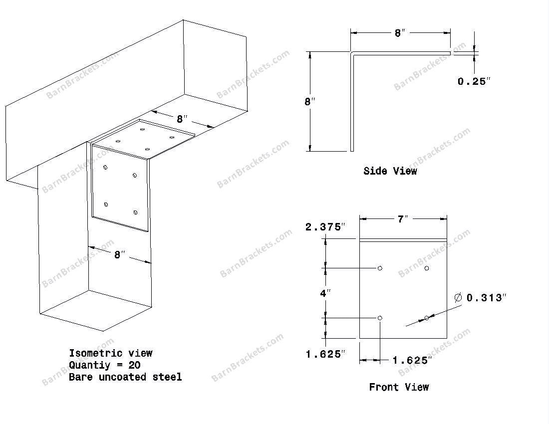 Order consists of 84 individual brackets.  All brackets will be made from 1/4 inch thick steel plate.  See the pictures in this listing for the design style and quantities of each bracket in this order.  Shipping is included in the price.