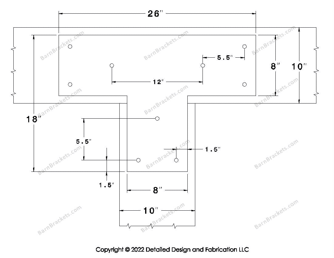 Order consists of 12 individual brackets.  4 of the 26"x18" x 8" legs tee brackets shown in this listing.  4 of the 26" x 18" x 4" legs tee brackets shown in this listing.  4 of the L shaped brackets shown in this listing.  All brackets will be made from 7 gauge thick steel plate.  All brackets will be powder coated black.  Shipping is included in the price.