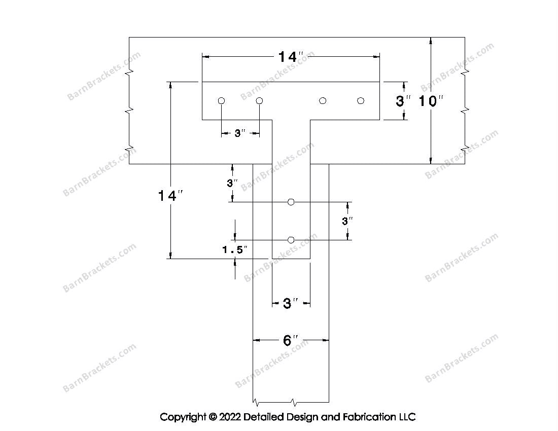 Leave Hole Size note in the spot above the subtotal in the Cart or email us info@barnbrackets.com We recommend drilling holes 1/16" larger in diameter than the fasteners you plan on using. If no hole sizing notes are added to the order, we will drill holes to 9/16" for 1/2" diameter hardware. Please contact us with any questions.